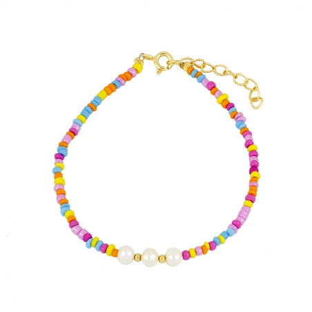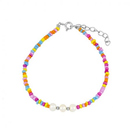 Disponível em Prata de lei e Prata 925 banhada a ouro. Tamanho da Pulseira: 15cm expansível até 18 cm. Cor: Multicolorida. Pedra: Pérola e Resina. Pérola: Joia do oceano, símbolo de beleza e elegância.
