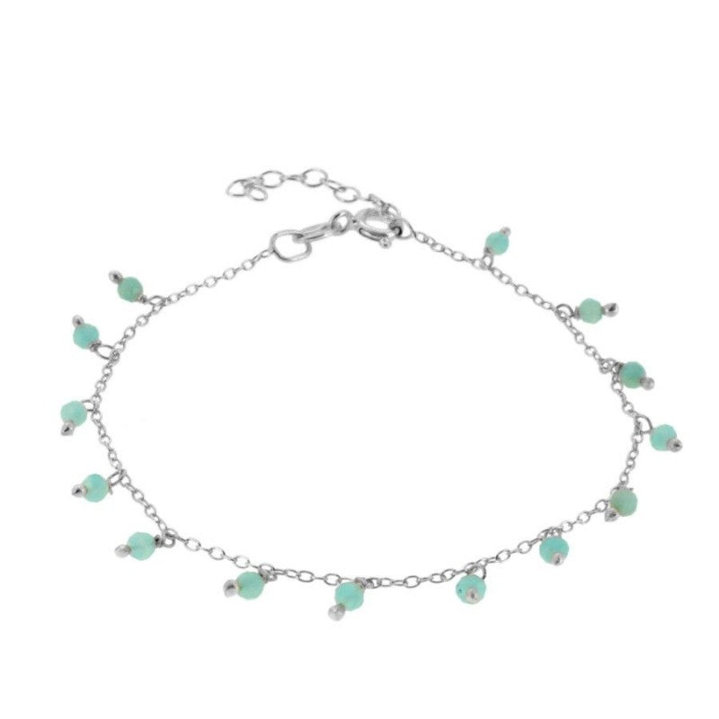 Disponível em Prata de lei e Prata 925 banhada a ouro. Tamanho da Pulseira: 15cm expansível até 18cm. Pedra: Amazonita. A pedra da calma e equilíbrio interior.